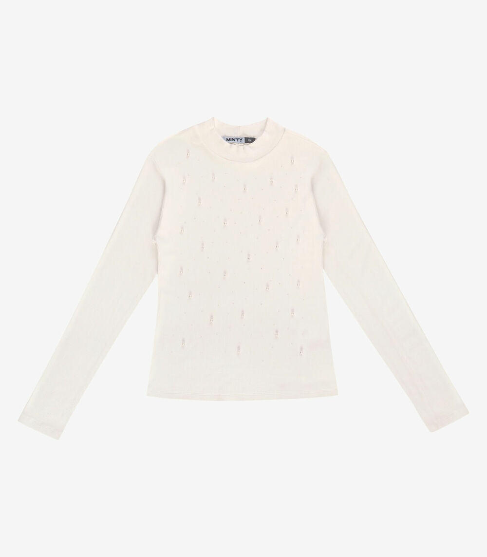 Blusa Juvenil Manga Longa Ribana e Rebites Minty Bege