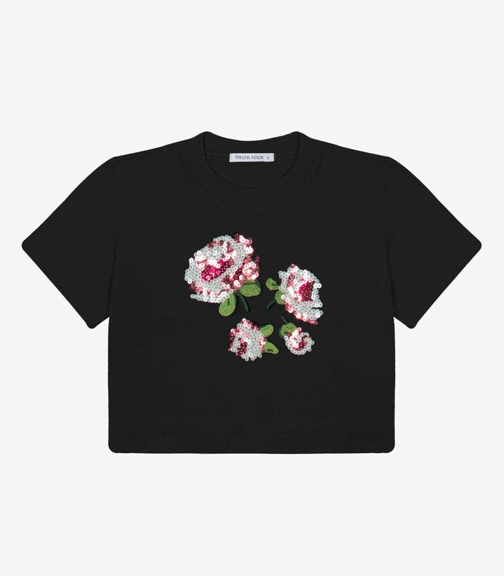 Blusa Manga Curta Aplique Lantejoulas Trick Nick Preto