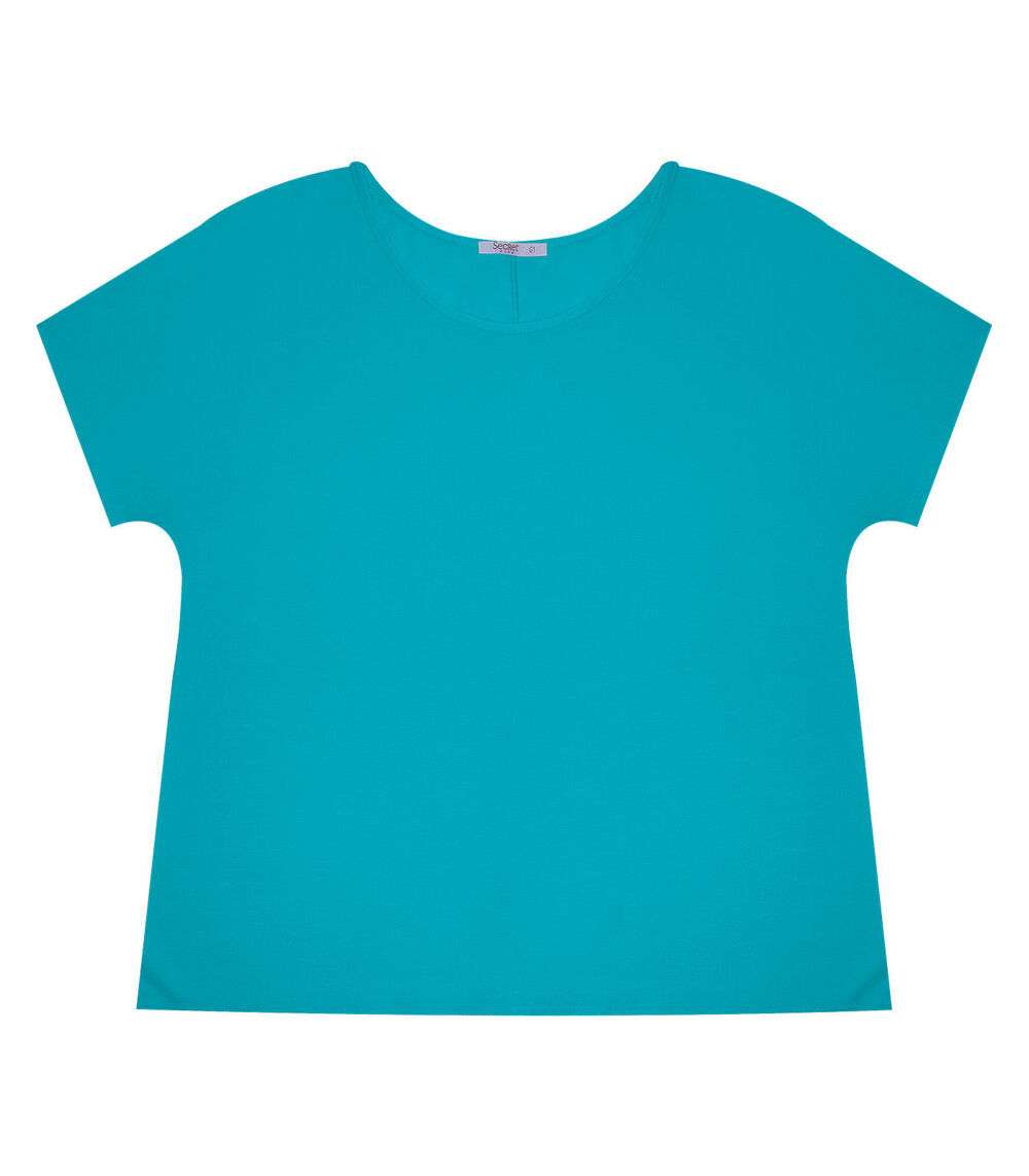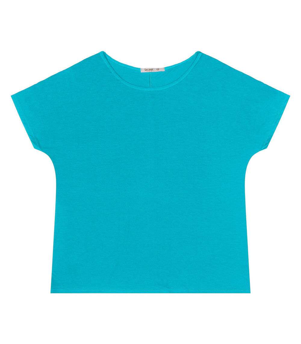 Blusa Manga Curta Feminina Plus Size Secret Glam Azul