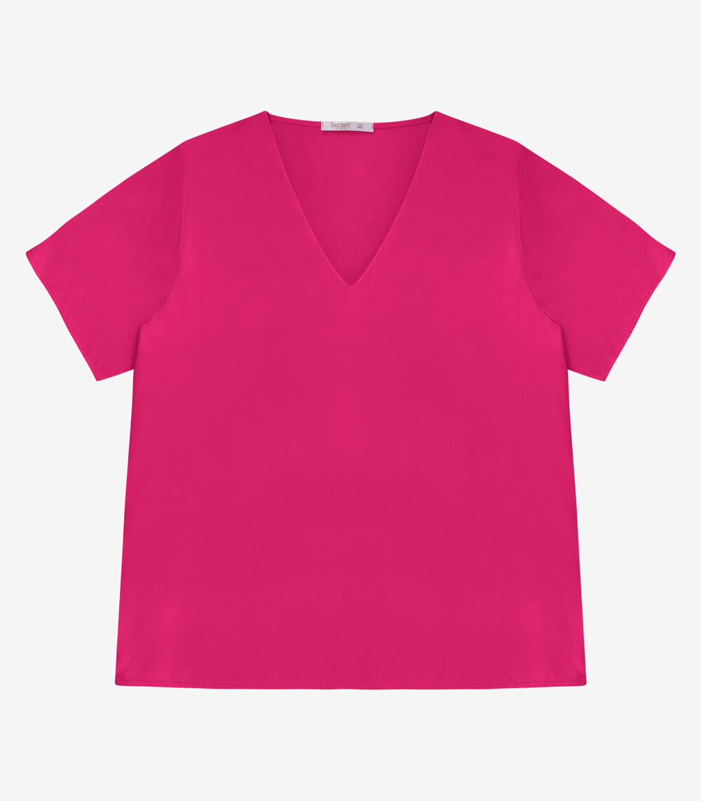Blusa Manga Curta Feminina Plus Size Secret Glam Rosa
