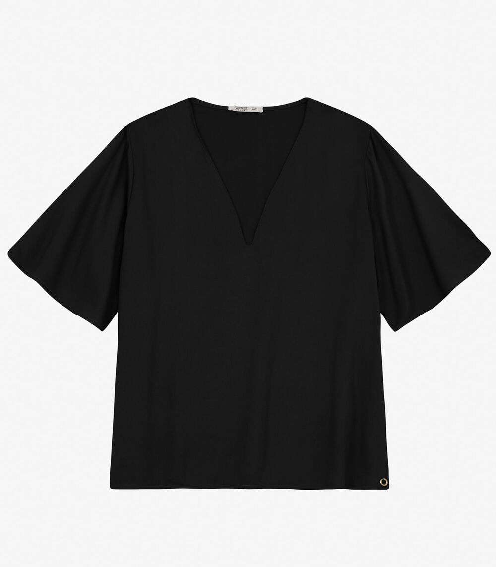 Blusa Manga Curta Plus Size Secret Glam Preto