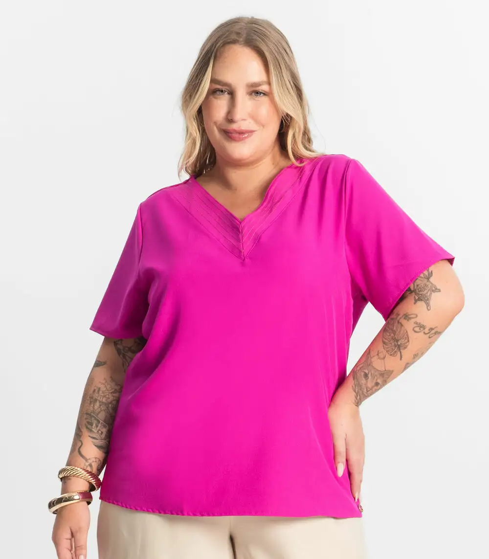 Blusa Manga Curta Plus Size Secret Glam Rosa
