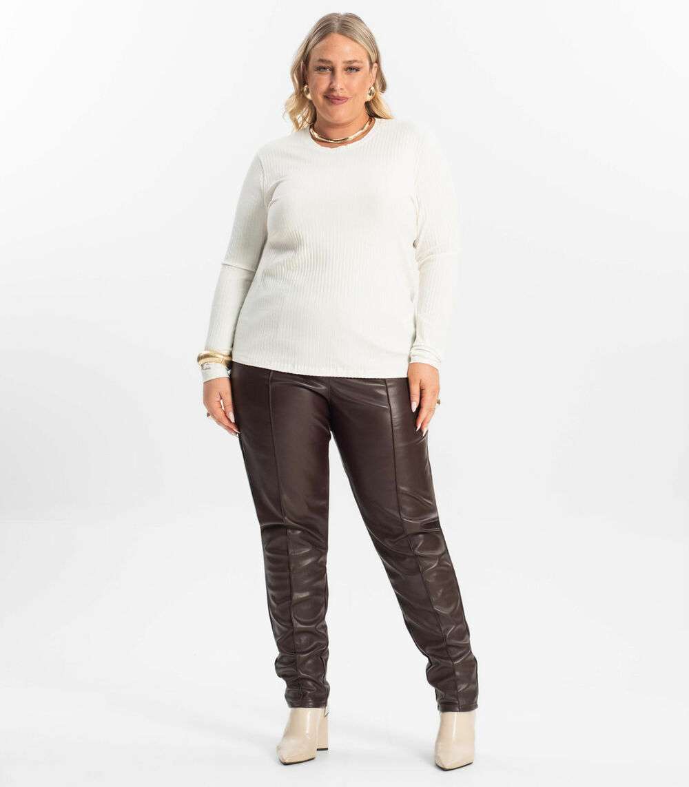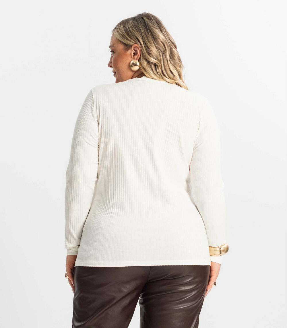Blusa Manga Longa Ribana Canelada Secret Glam Bege