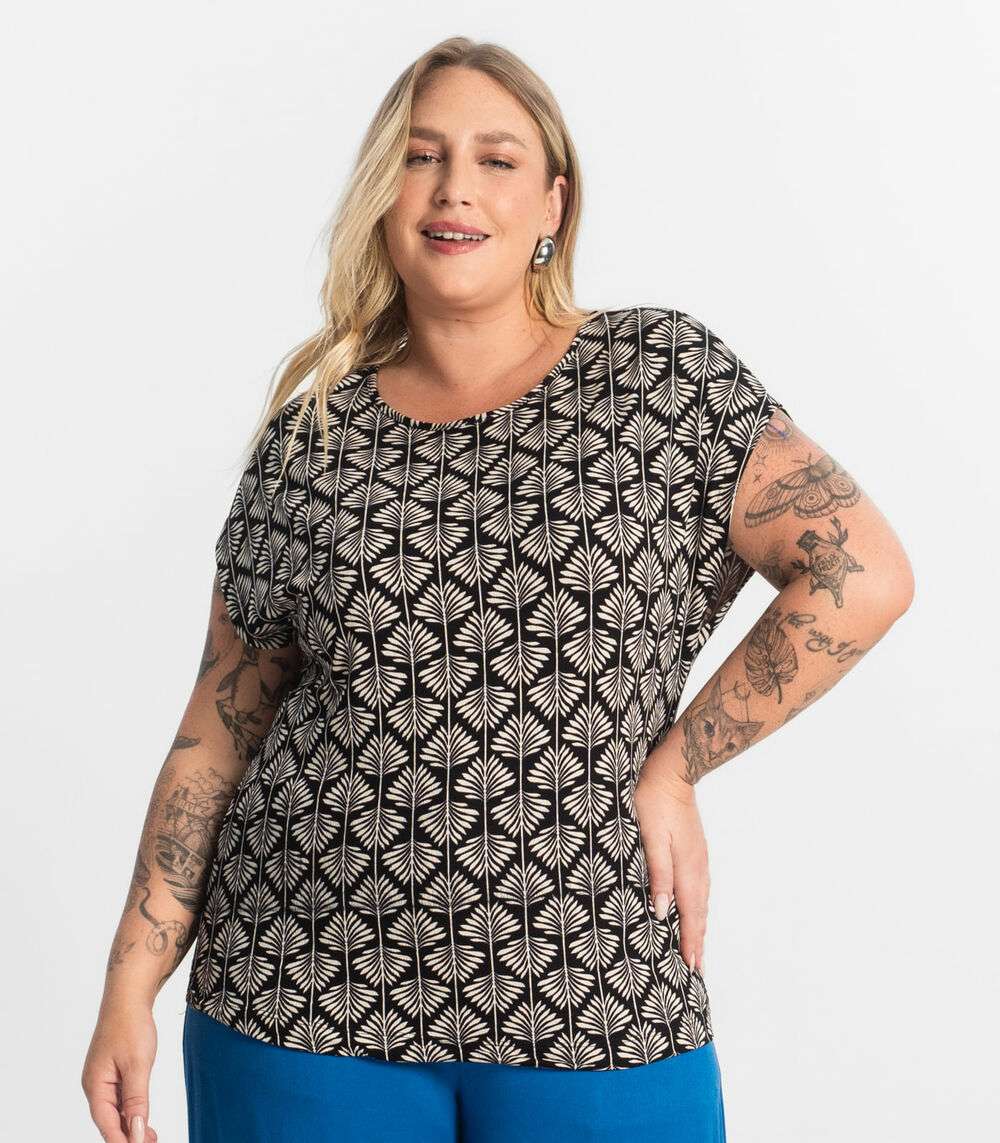 Blusa Manga Morcego Plus Size Secret Glam Preto