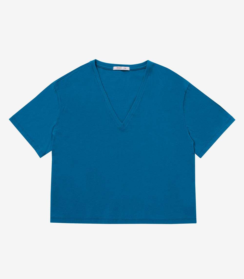 Blusa Meia Malha Plus Size Secret Glam Azul