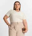 Blusa Plus Size Com Listras Secret Glam Bege