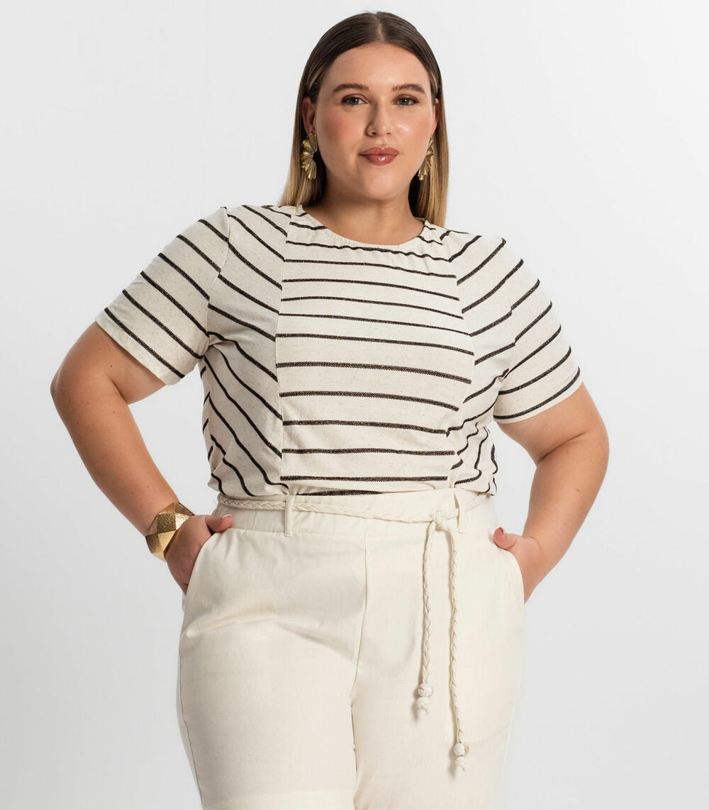 Blusa Plus Size Com Listras Secret Glam Preto