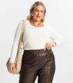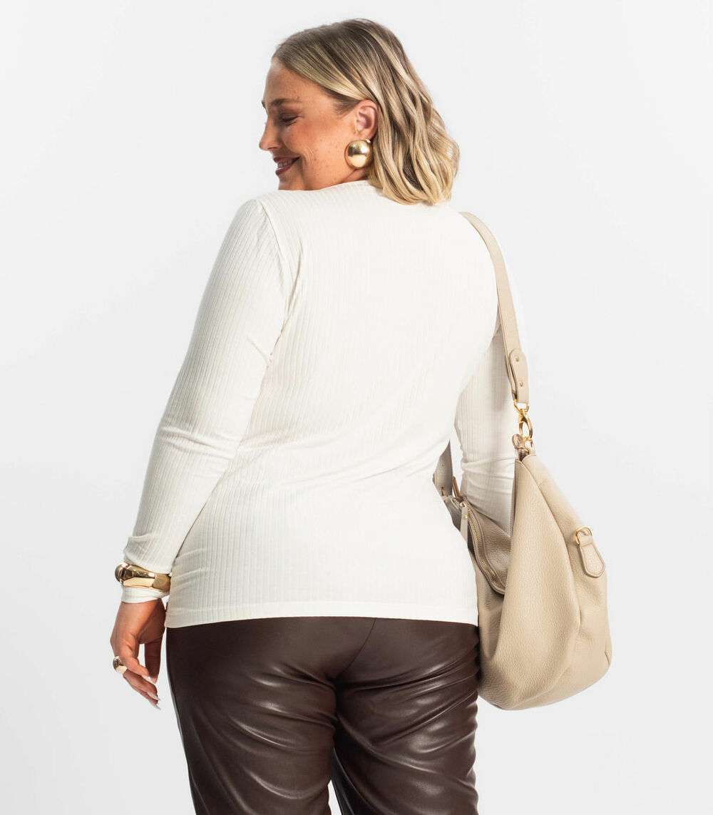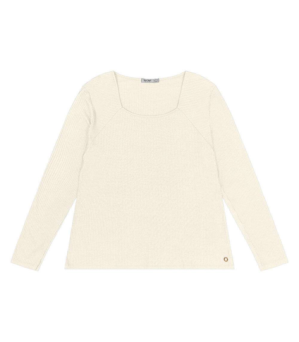 Blusa Plus Size Em Ribana Canelada Secret Glam Bege