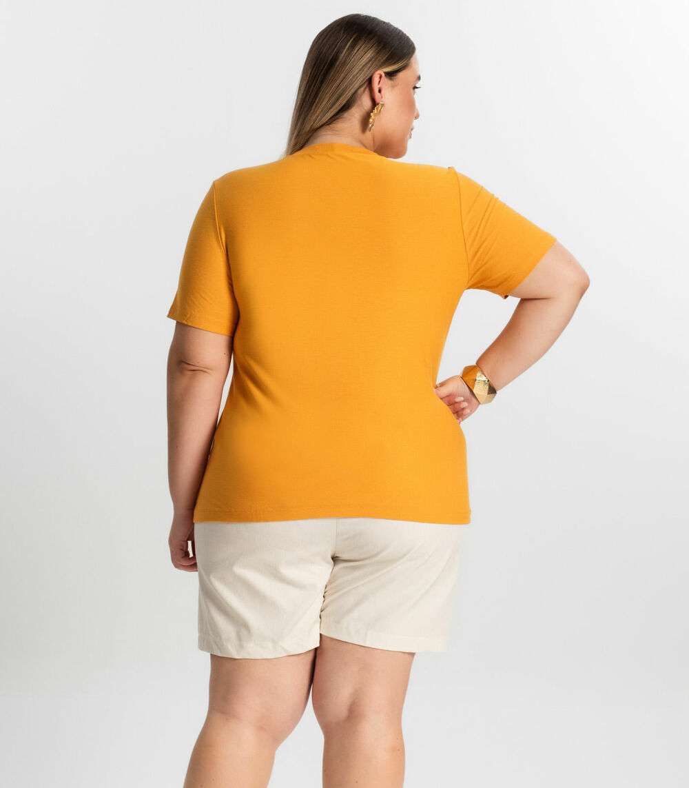 Blusa Plus Size Feminina Manga Curta Secret Glam Amarelo
