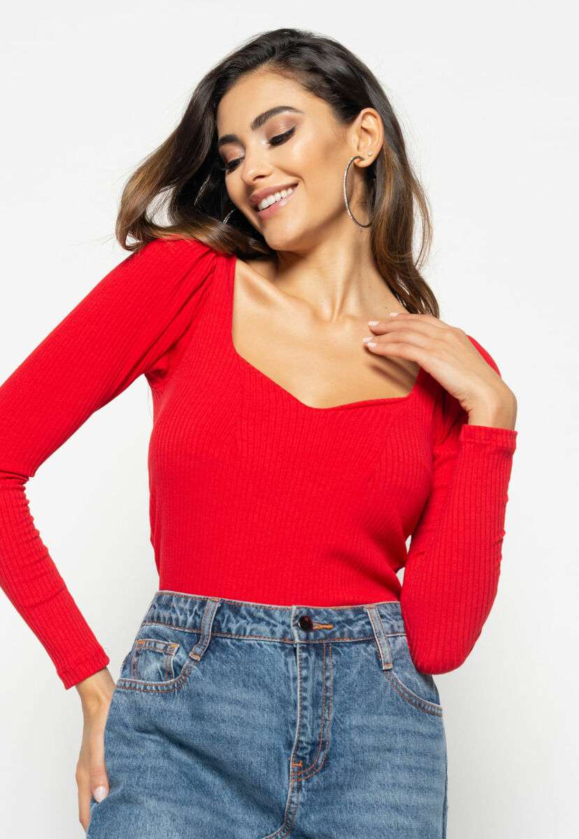 Blusa Princesa Decote Coração Malha Canelada Vermelho