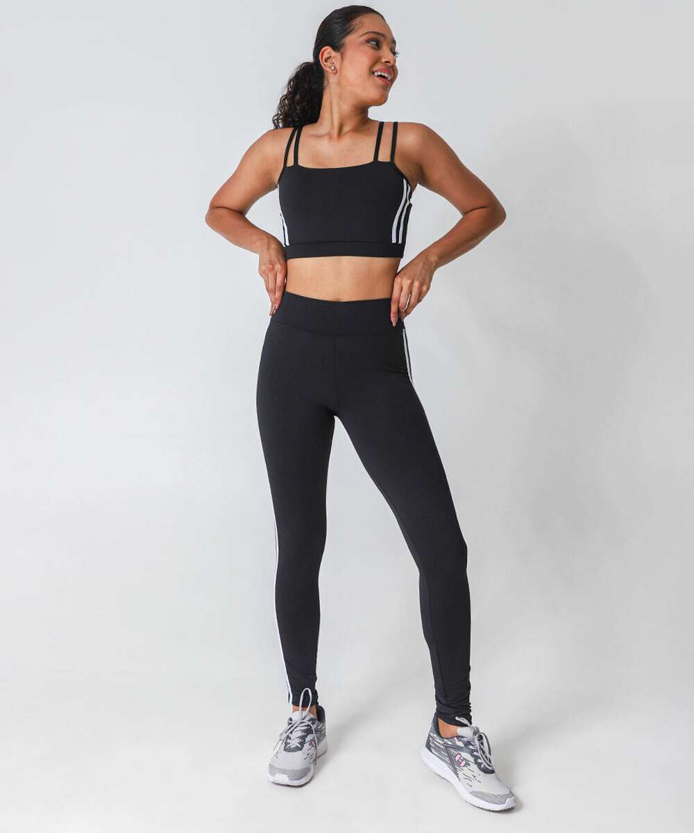 Calça Feminina Legging Listrada Fitness Marisa Preto