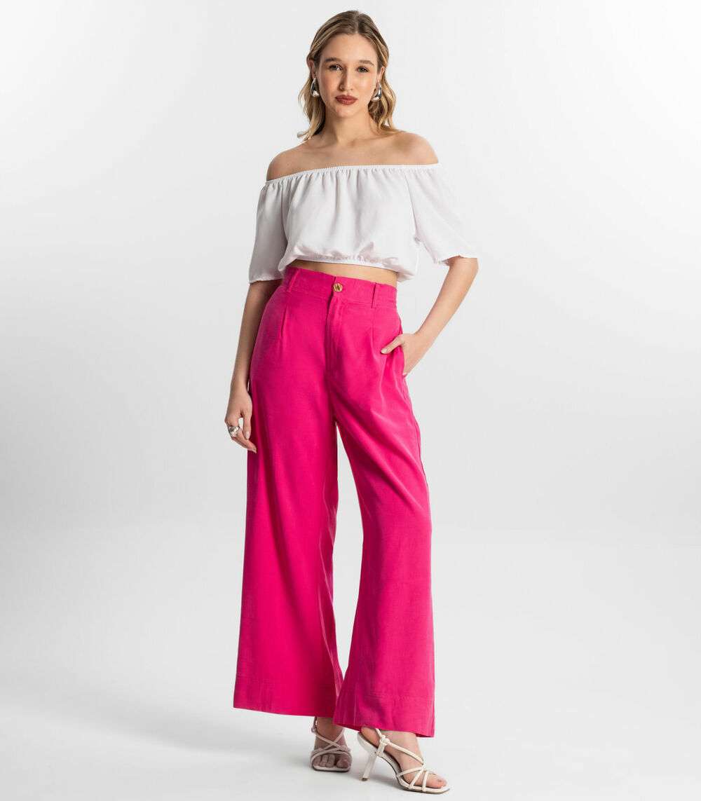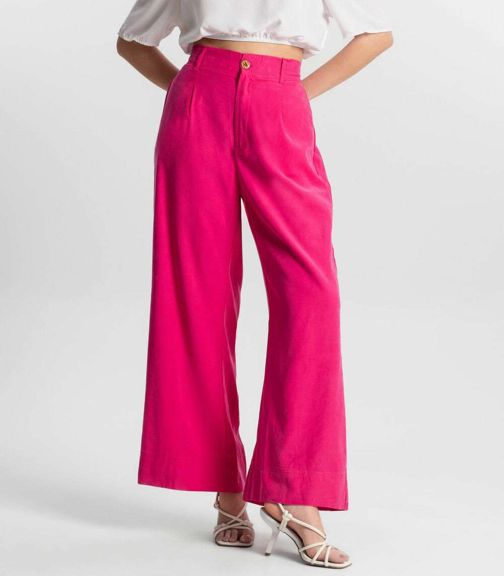 Calça Feminina Pantalona Em Sarja Endless Rosa
