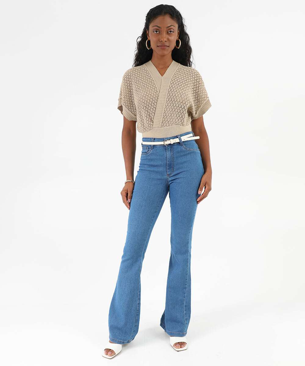 Calça Jeans Flare Feminina Push Up Marisa Azul