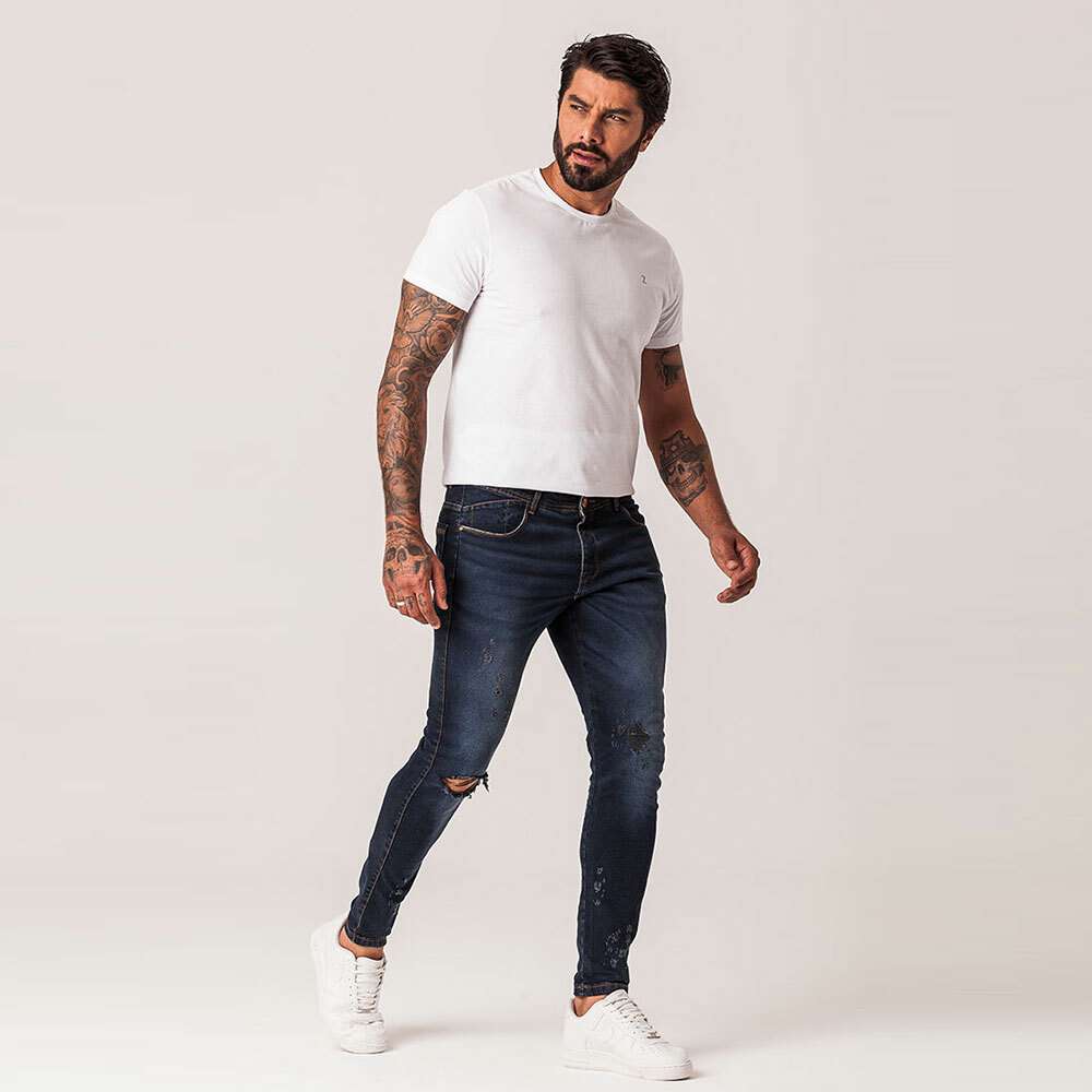 Calça Jeans Super Skinny Puídos Masculina Zune