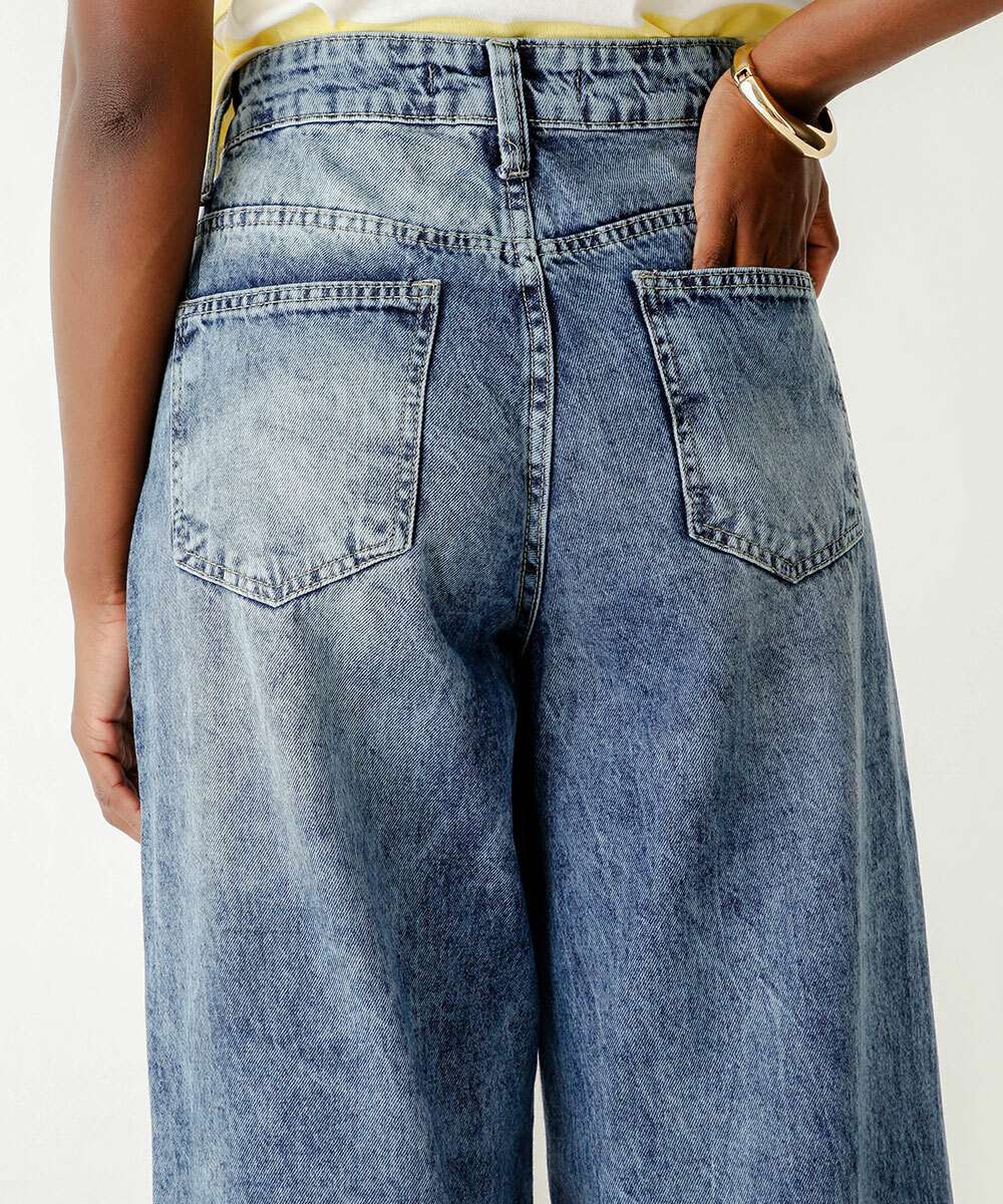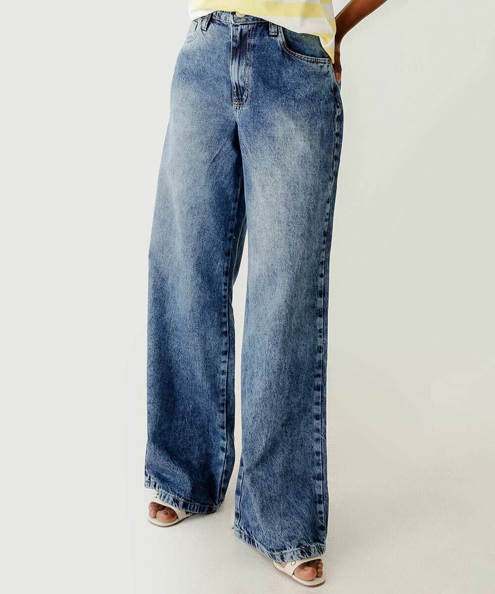 Modelo: Calça Jeans Wide Leg Feminina Marmorizada Bolsos Marisa