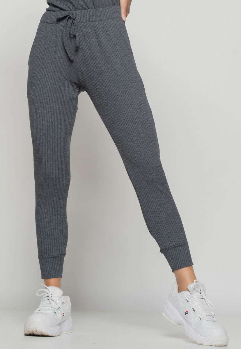 Calça Jogger Comfy Malha Canelada Grafite Salvatore Fashion