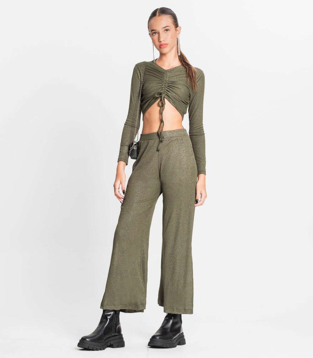 Calça Juvenil Feminina Em Ribana Canelada Minty Verde