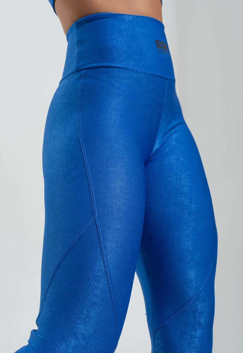 Calça Legging Suplex Canelada com Brilho e Recortes Azul Salvatore Fashion