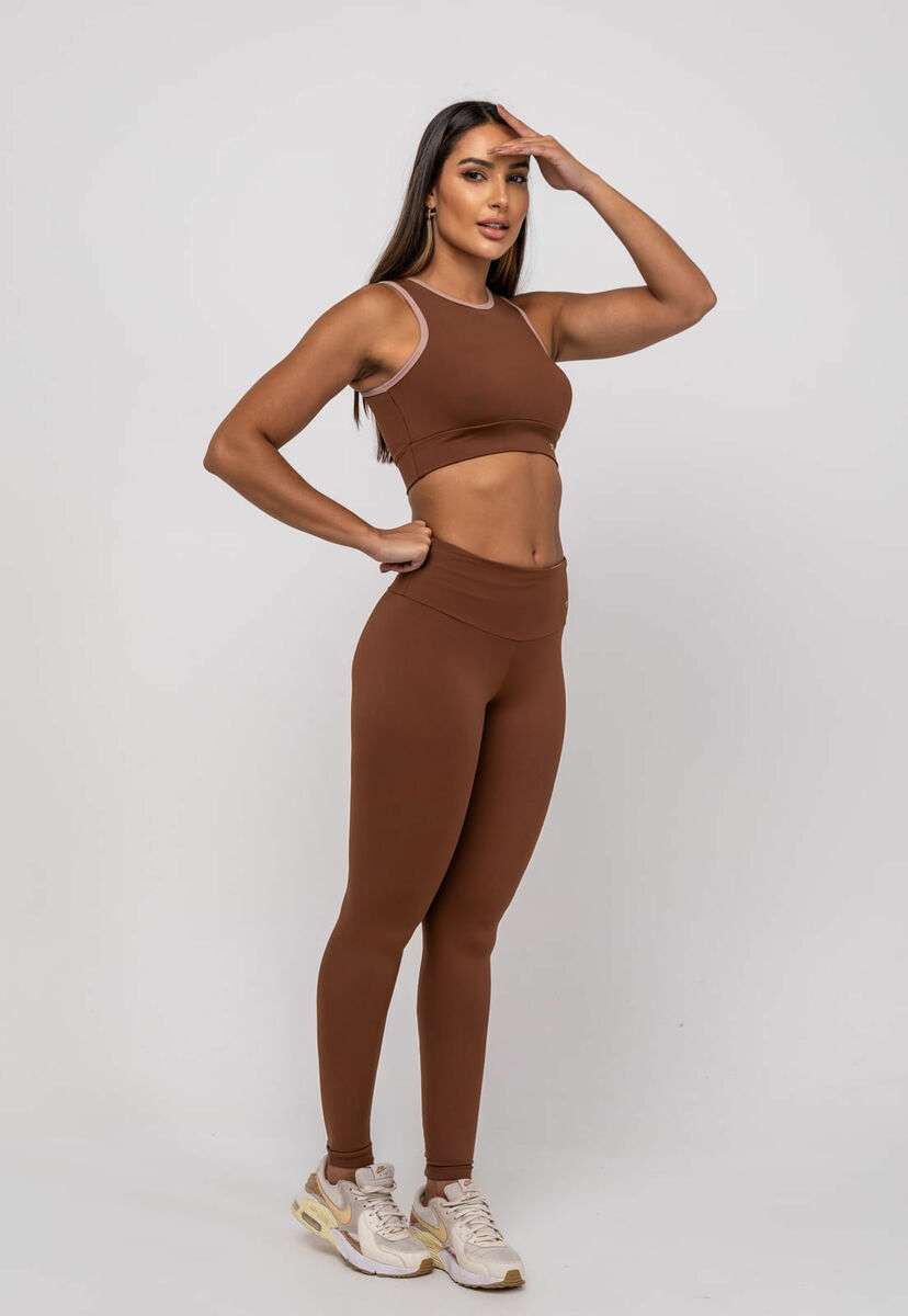 Calça Legging Suplex Poliamida Básica Marrom Salvatore