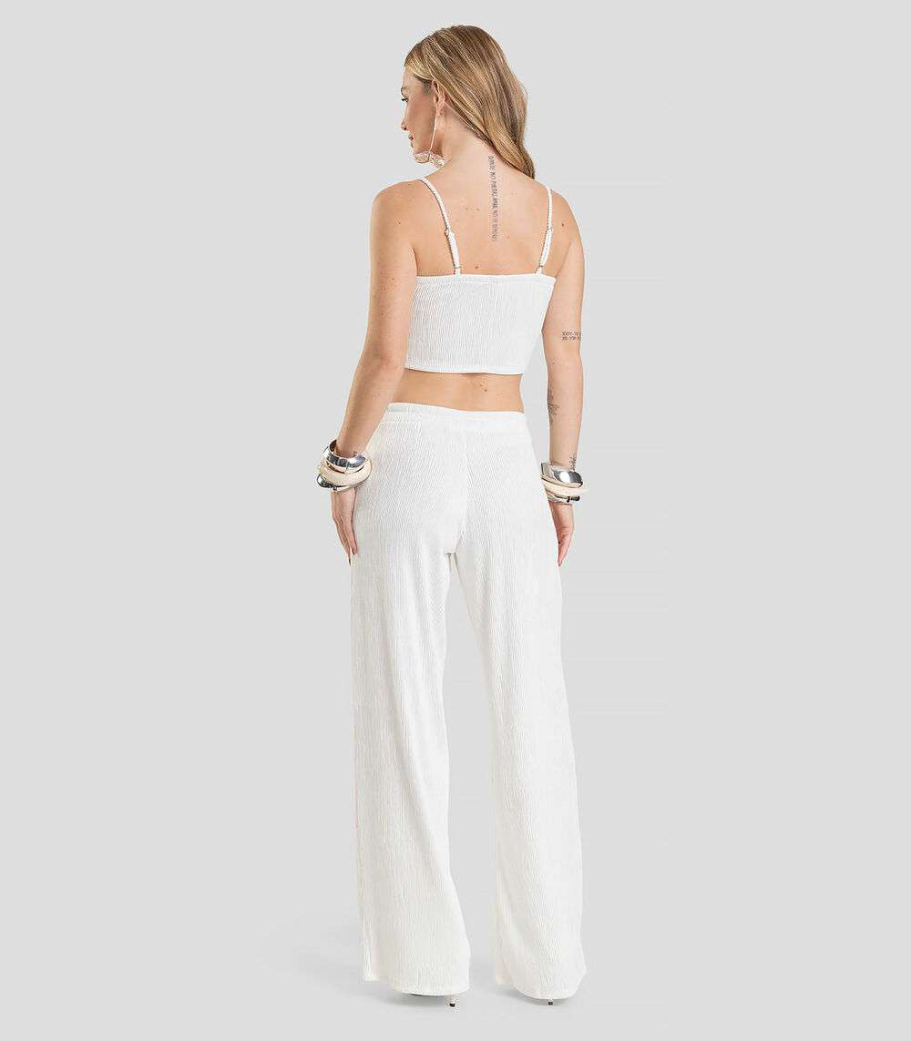 Calça Pantalona Feminina Texturizada Fluída Dianna Bege