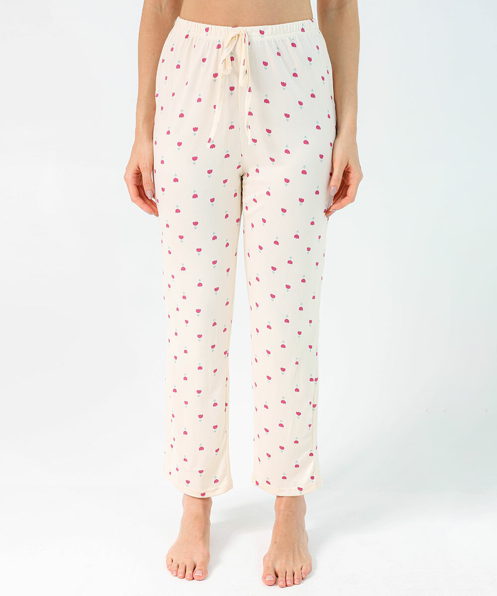 Calça Pijama Feminino Avulsa Flores Marisa Off White