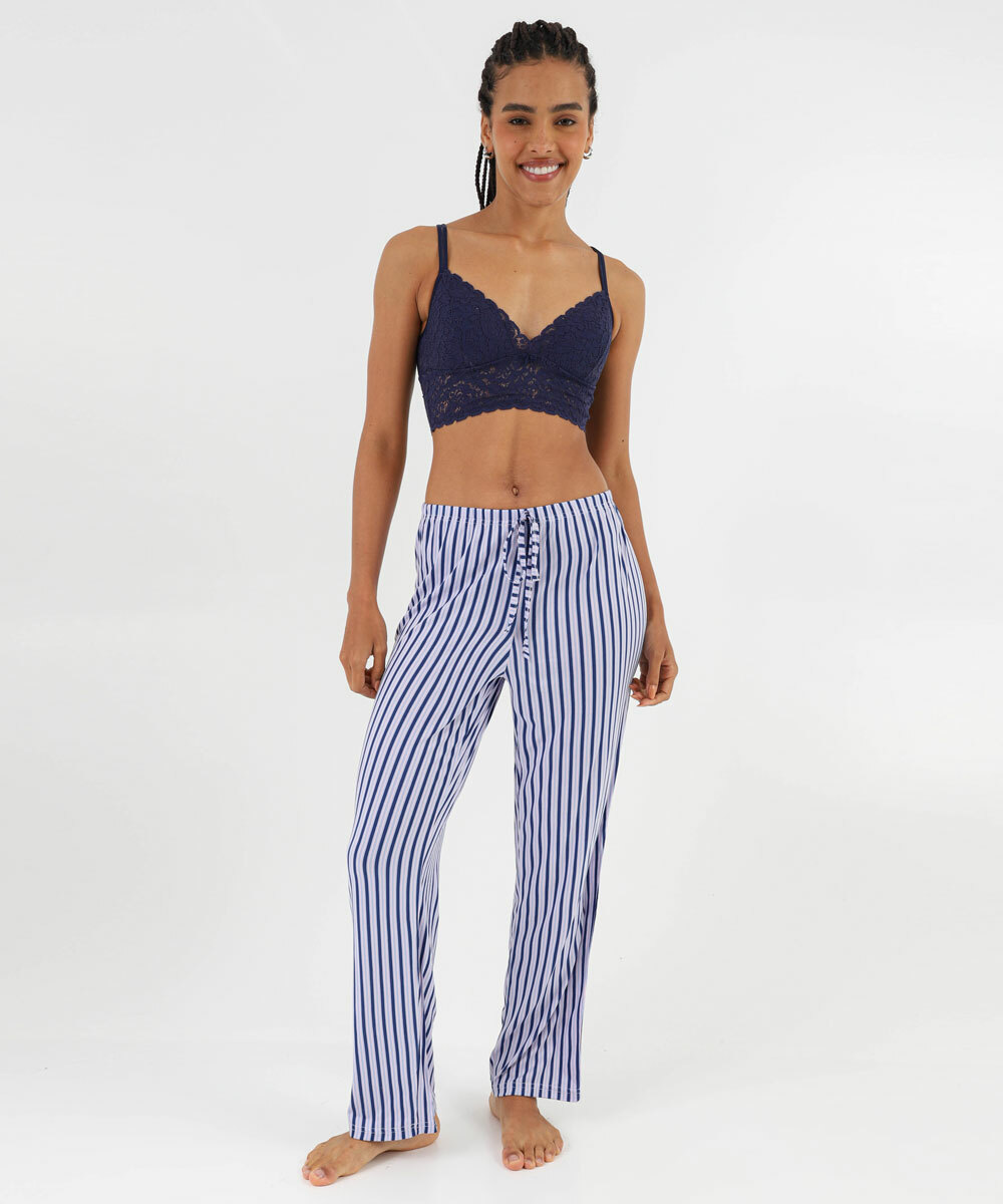 Calça Pijama Feminino Avulsa Listrada Marisa Azul