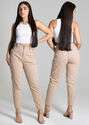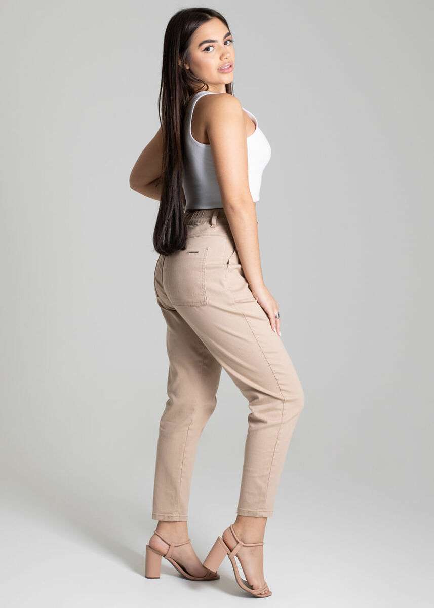 Calça mom confeccionada em sarja. A modelagem mom tem um caimento soltinho nos quadris e coxas ajustando até o tornozelo. Cintura alta Fechamento com botão e zíper Bolsos frontais e bolsos traseiros funcionais Barra simples Modelagem: Mom Tecido: Sarja Tipo de lavagem: Color Cor: Bege