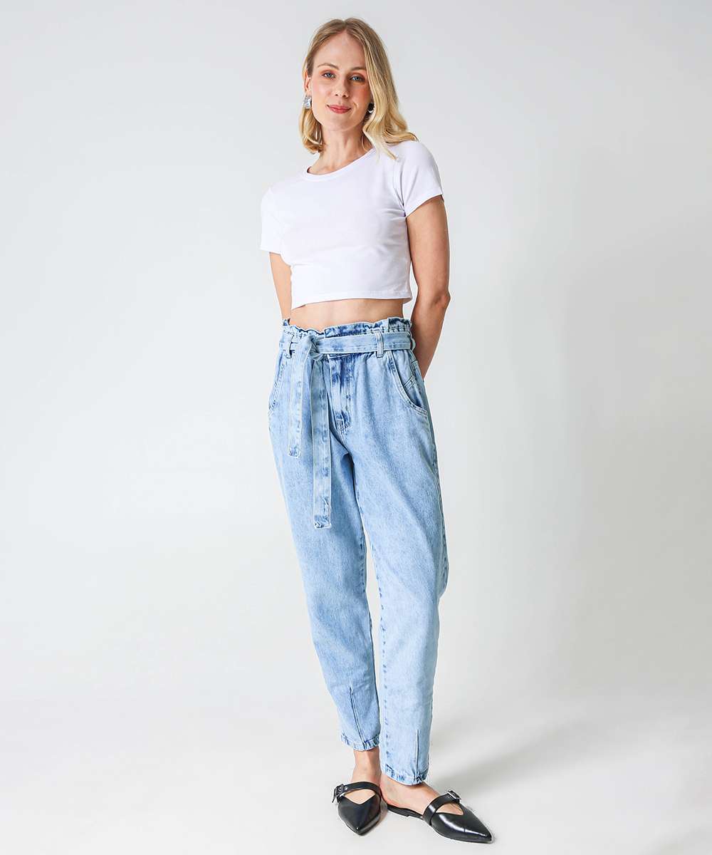 Calça Slouchy Jeans Feminina Clochard Cinto
