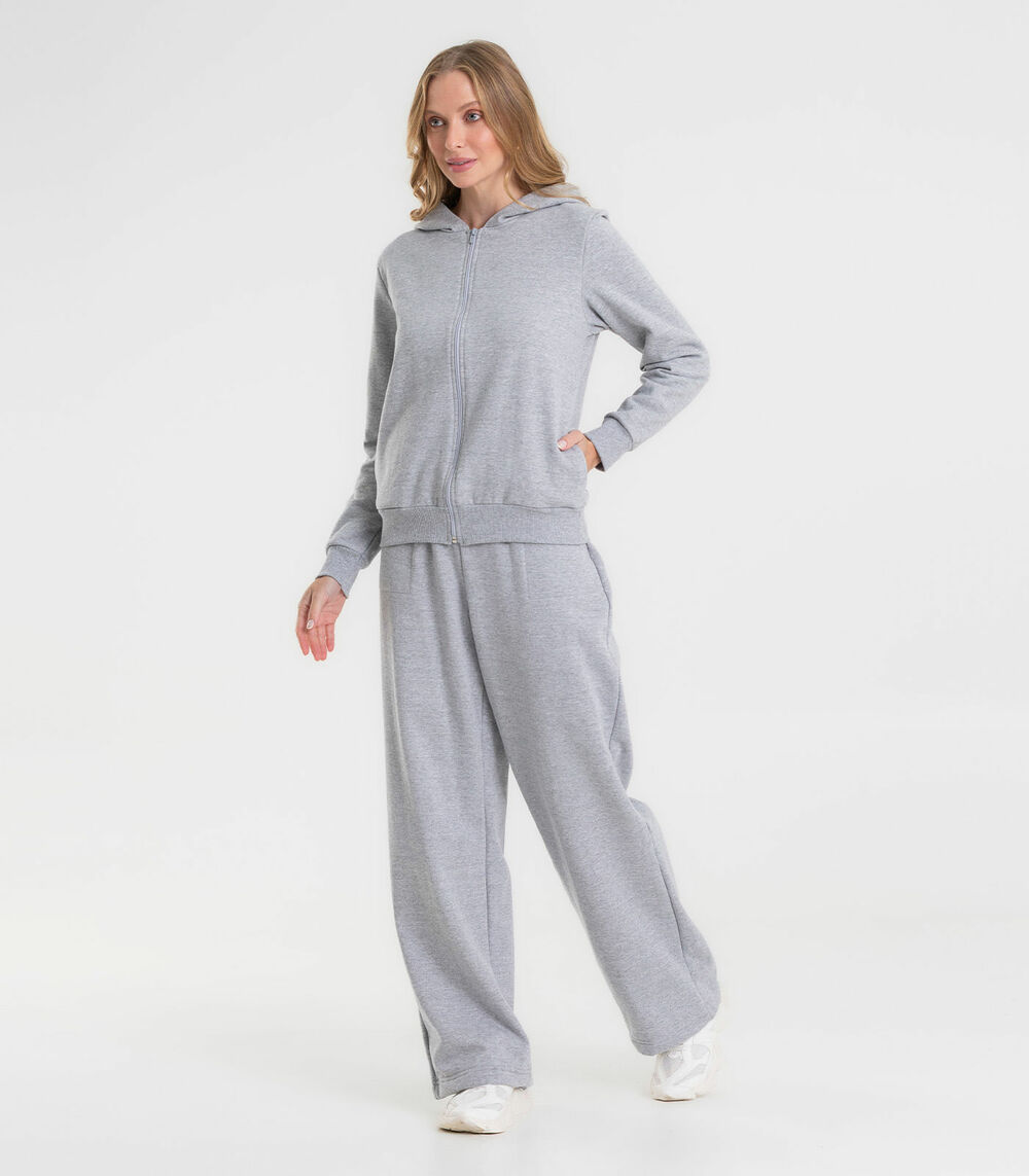 Calça Wide Leg Moletom Peluciado Básico Rovitex Cinza
