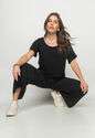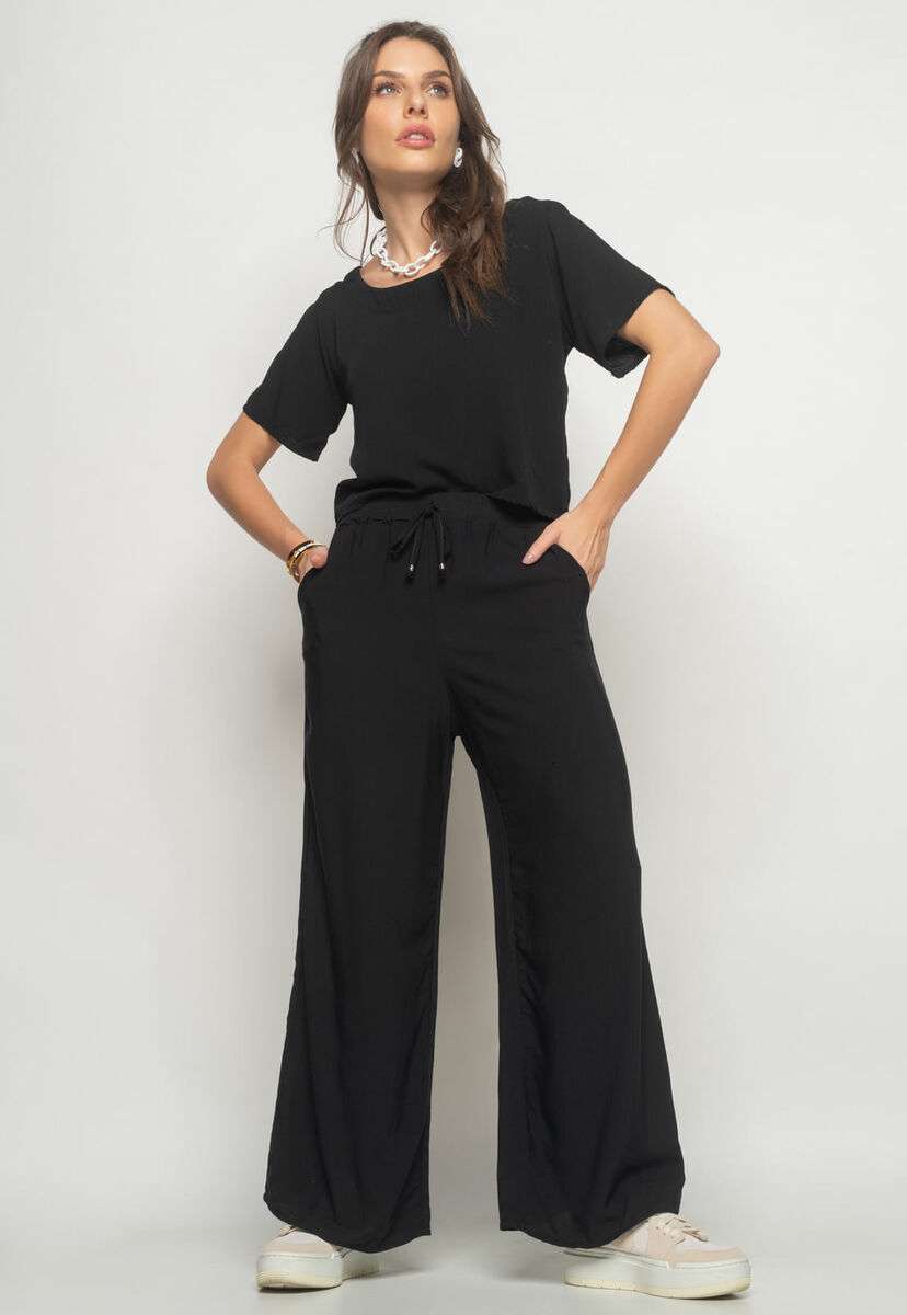 Calça Wide Leg Viscolinho Com Bolso Preta Salvatore Fashion