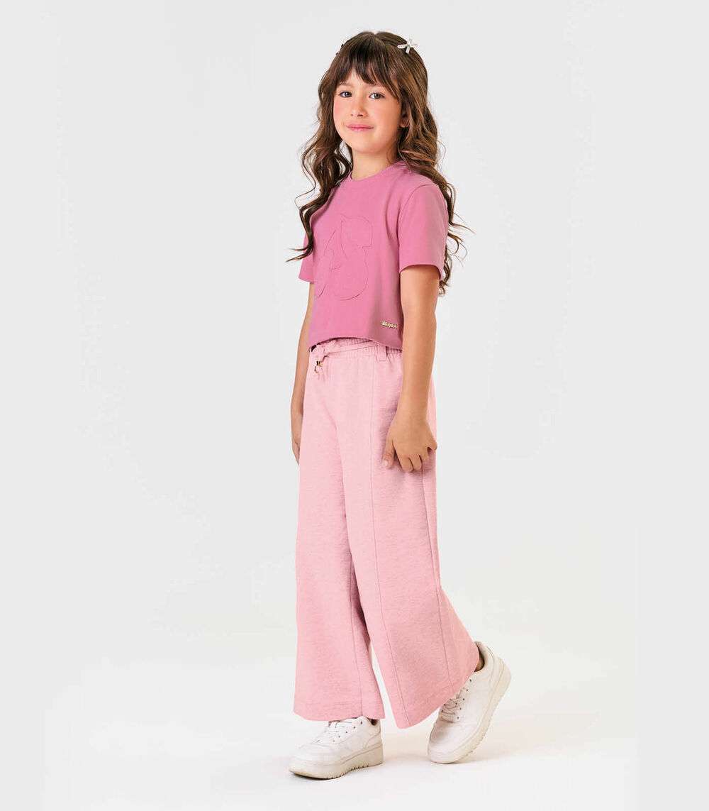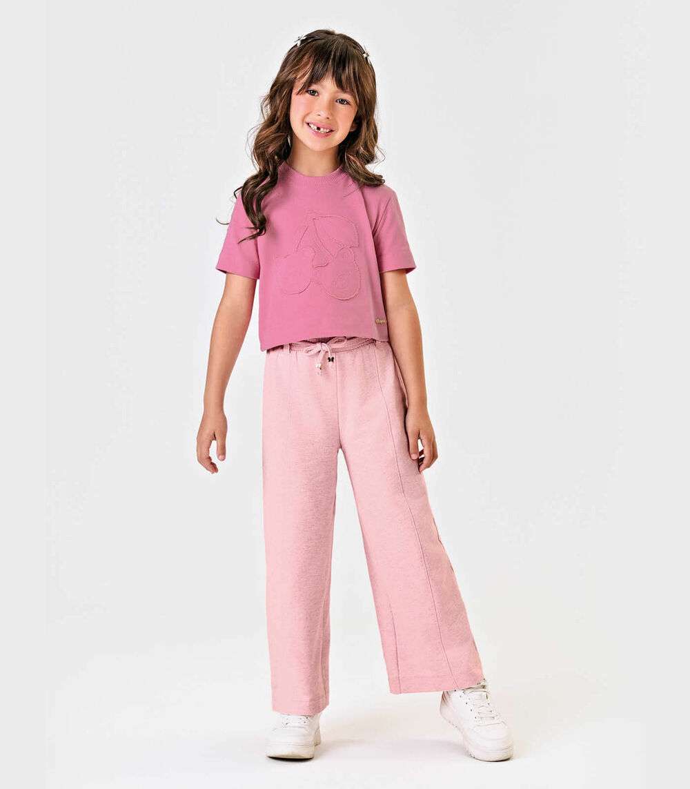 Calca Wide Leg Moletom Mesclado Trick Nick Rosa
