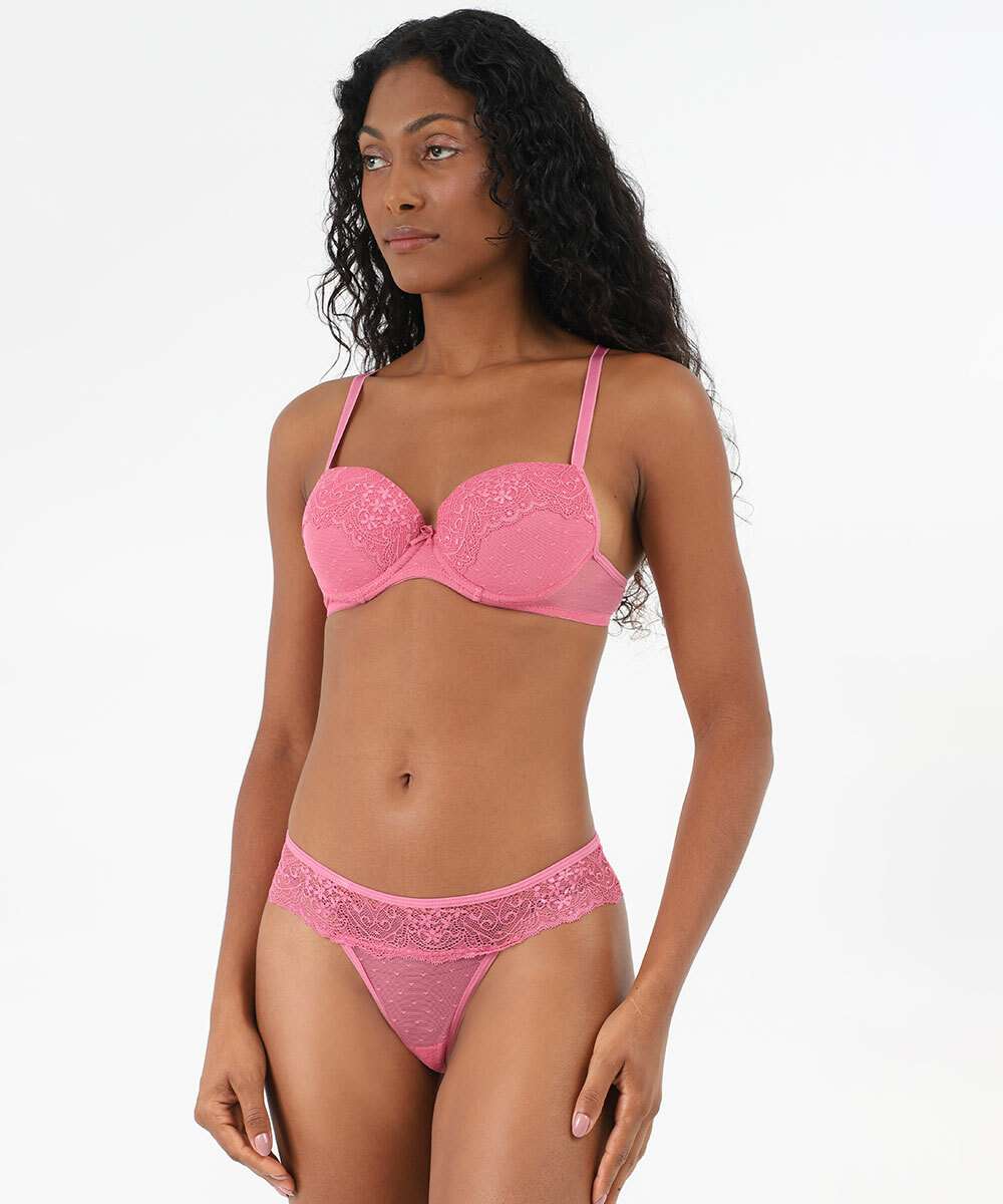Calcinha Biquíni Recorte Renda Tule Marisa Rosa