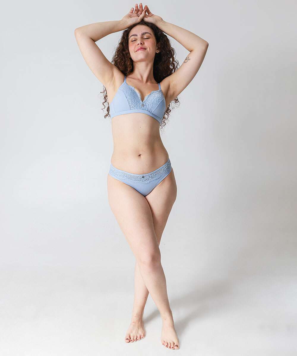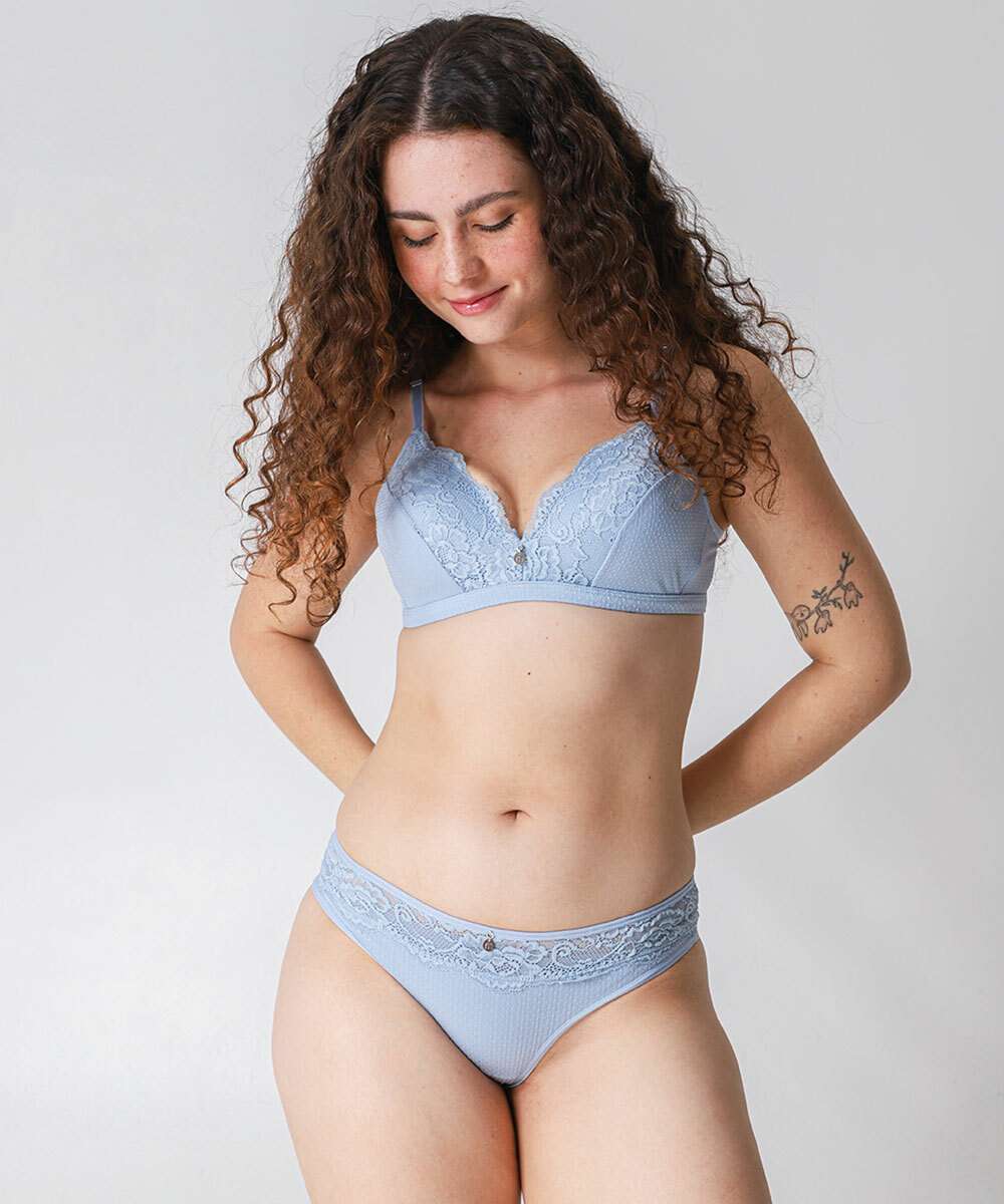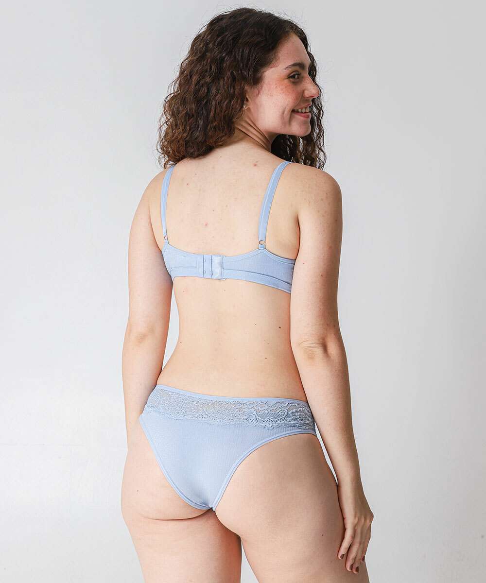 Calcinha Biquíni Textura Recorte Renda Marisa Azul