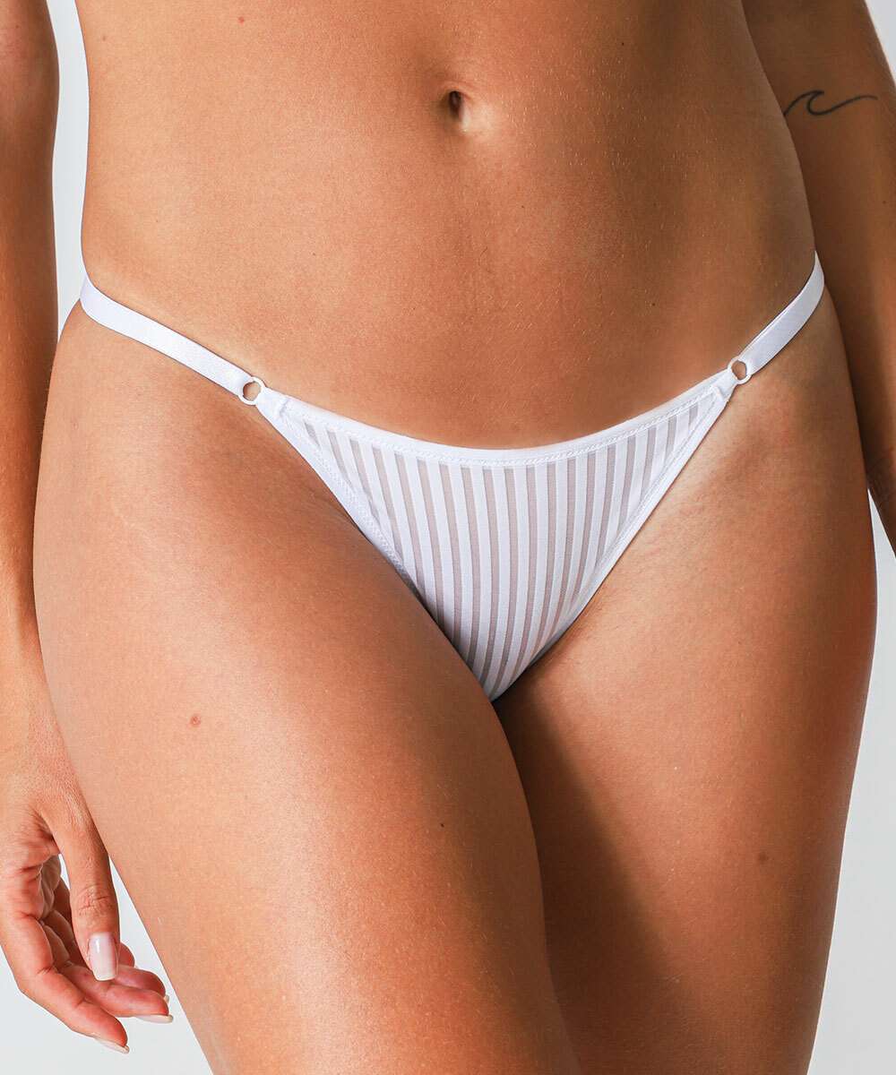 Calcinha String Listras Tule Marisa Branco