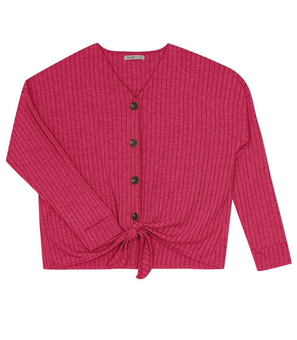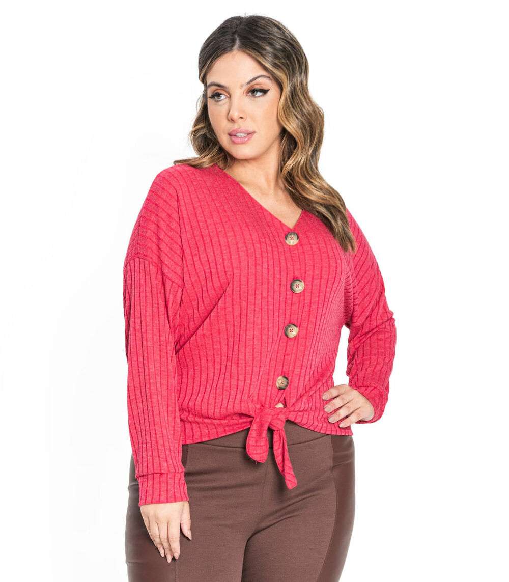 Camisa Feminina Canelada Com Nó Secret Glam Vermelho