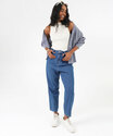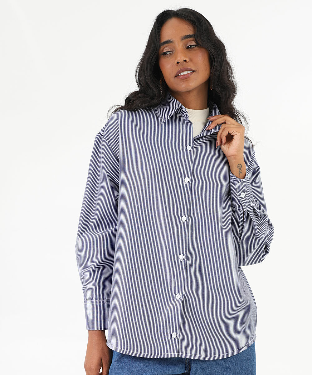 Camisa Feminina Listrada Manga Longa Marisa Azul
