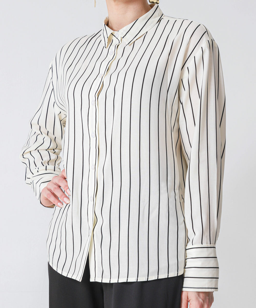 Camisa Feminina Listrada Manga Longa Marisa Bege