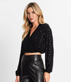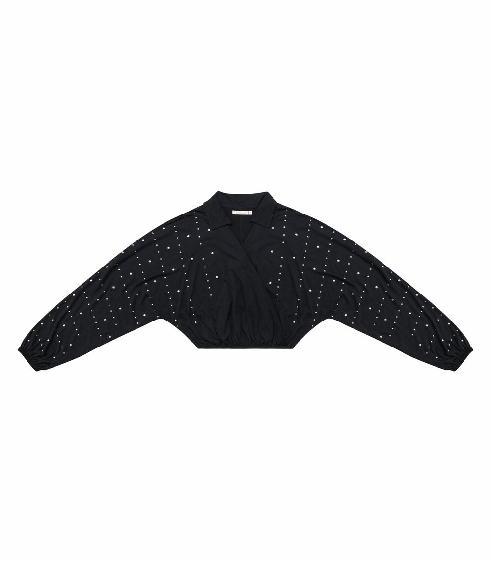 Camisa Feminina Manga Longa Com Strass Endless Preto
