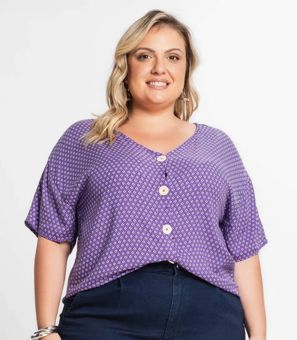 Camisa Feminina Plus Size Estampada Secret Glam Roxo