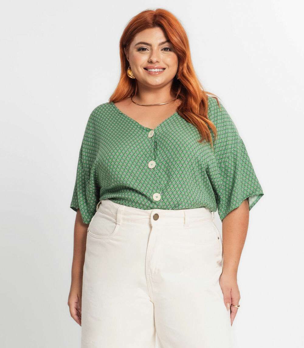 Camisa Feminina Plus Size Estampada Secret Glam Verde