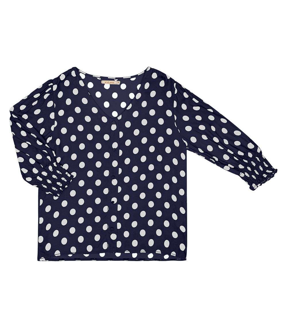 Camisa Feminina Poá Mangas 3/4 Endless Azul