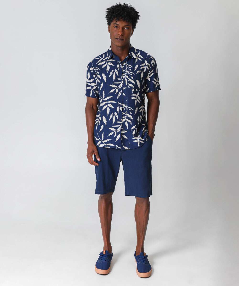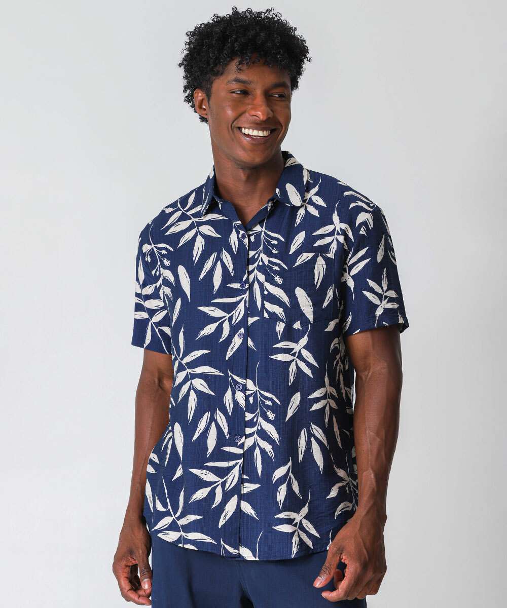Camisa Masculina Estampa Folhas Marisa Azul