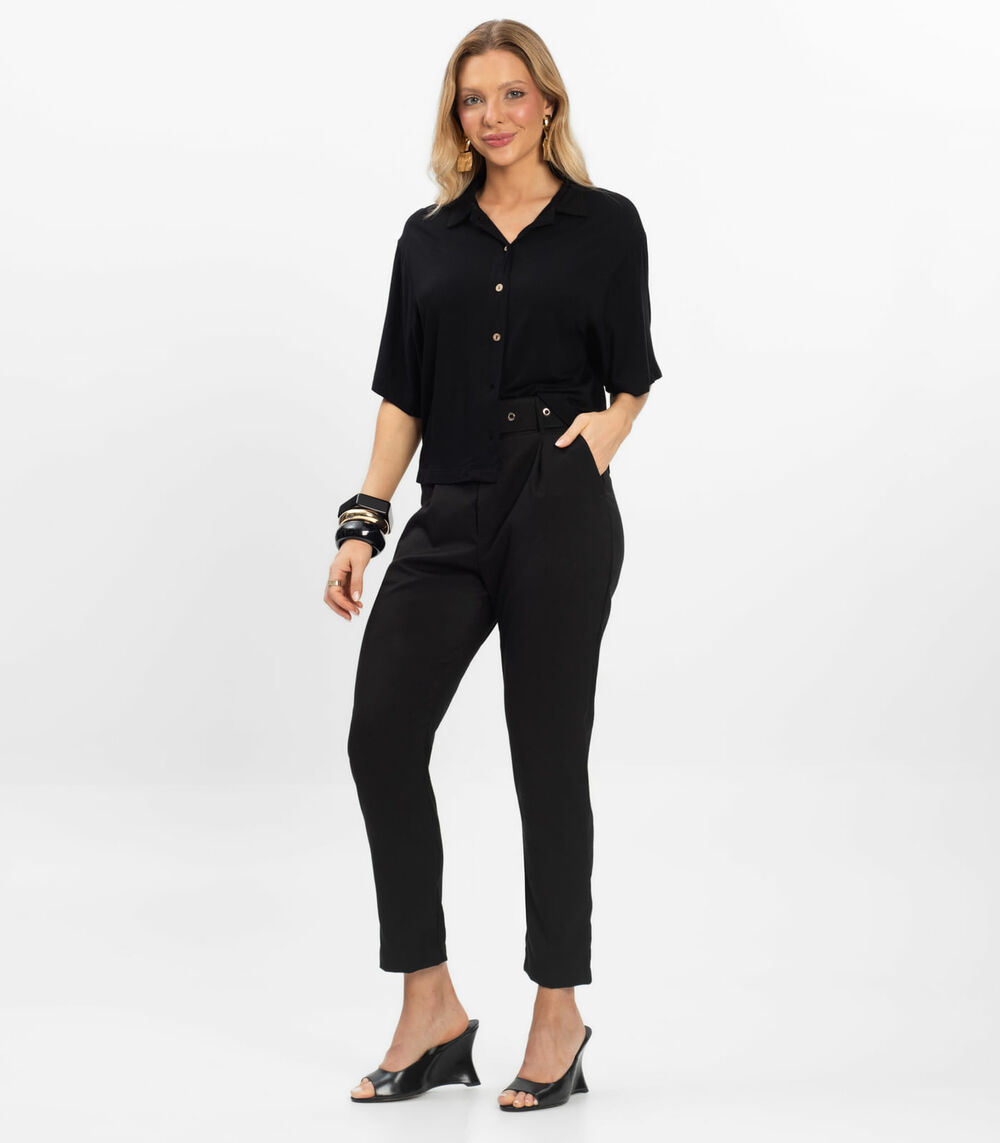 Camisa Oversized Visco Maquinetada Rovitex Preto