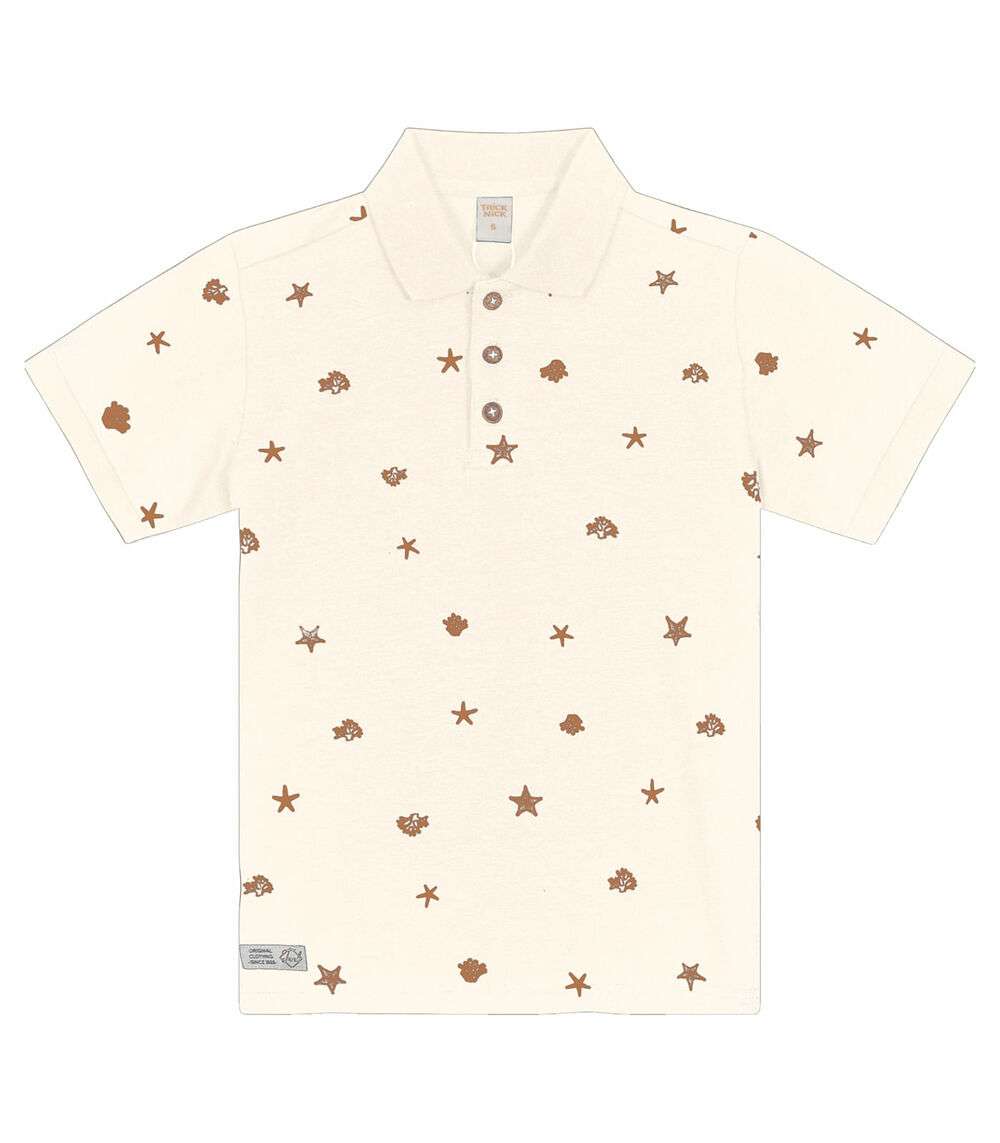 Camisa Polo Infantil Estampada Trick Nick Bege