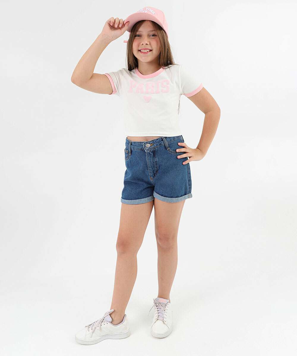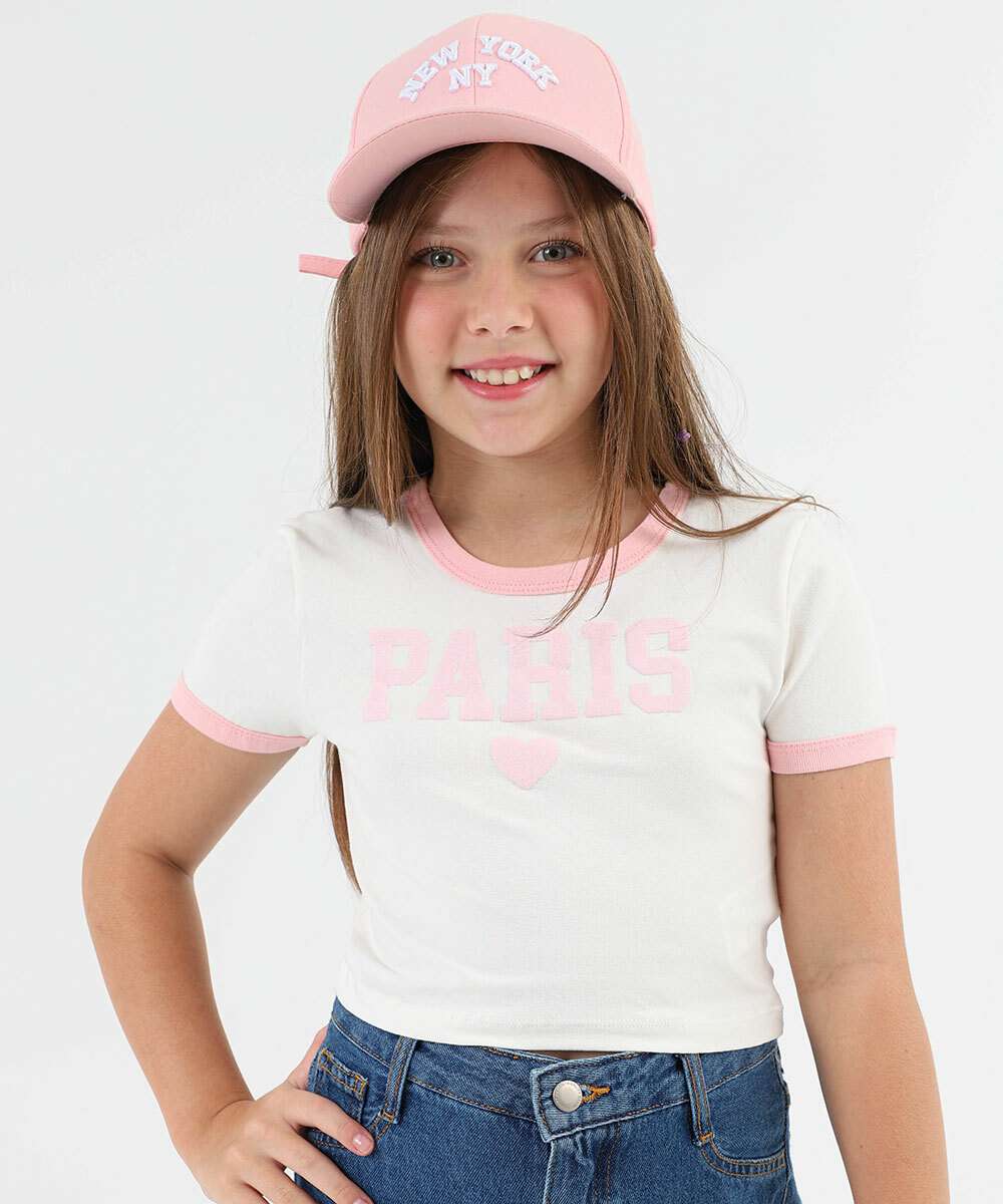 Camiseta Infantil Cotton Marisa Tam 4 a 10 Off White