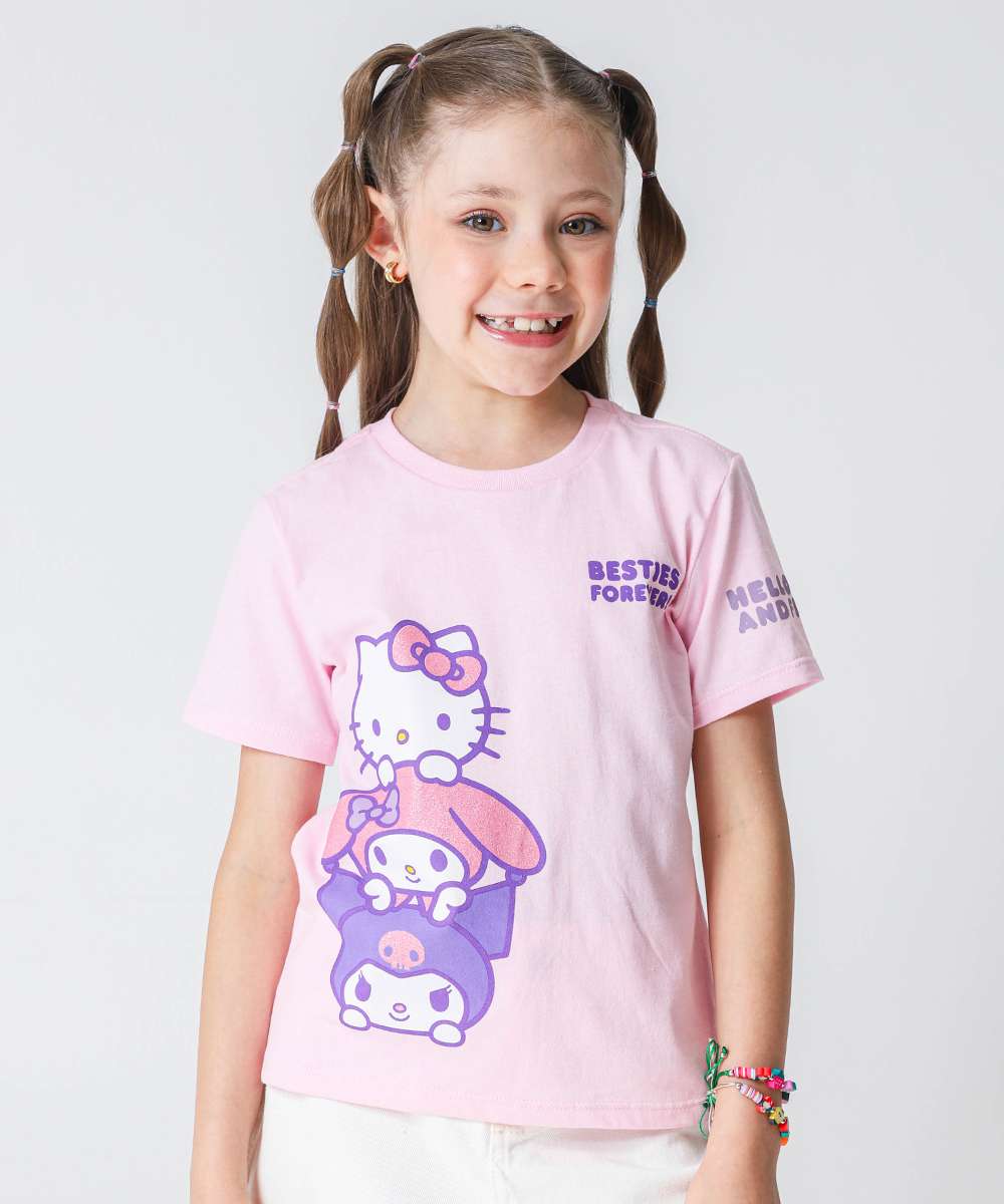 Camiseta Infantil Estampa Hello Kitty Tam 4 a 10 Rosa