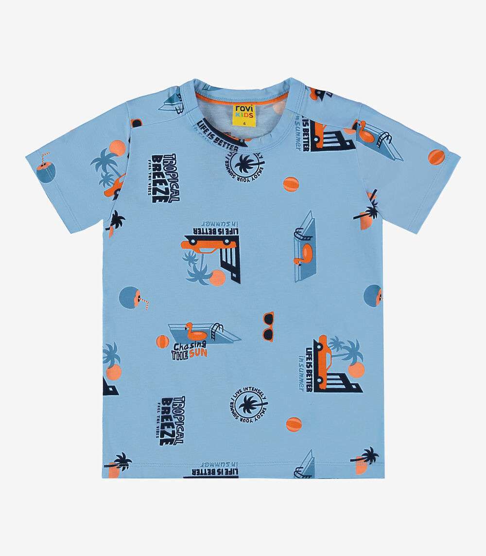 Camiseta Infantil Masculina Estampada Rovi Kids Azul