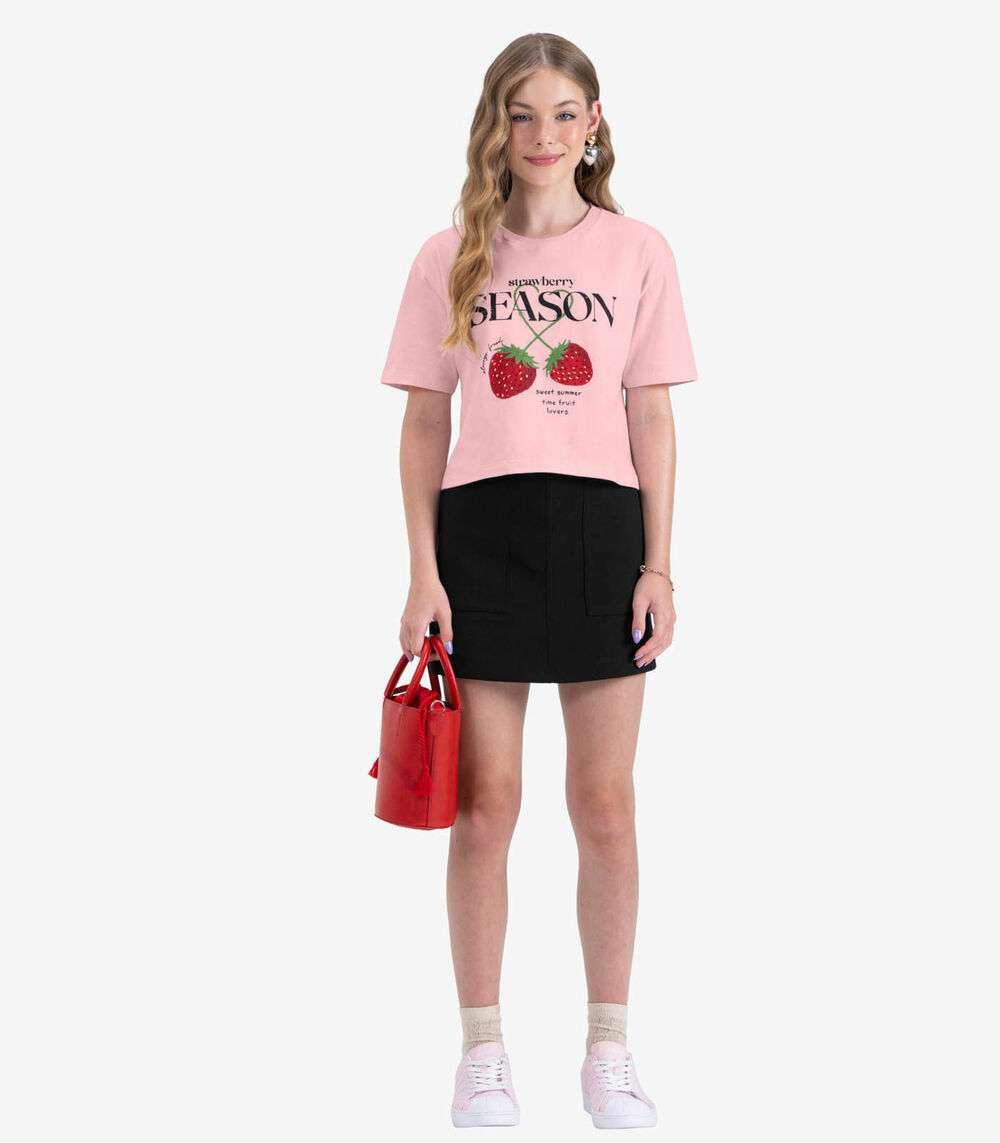 Camiseta Juvenil Manga Curta em Meia Malha Minty Rosa