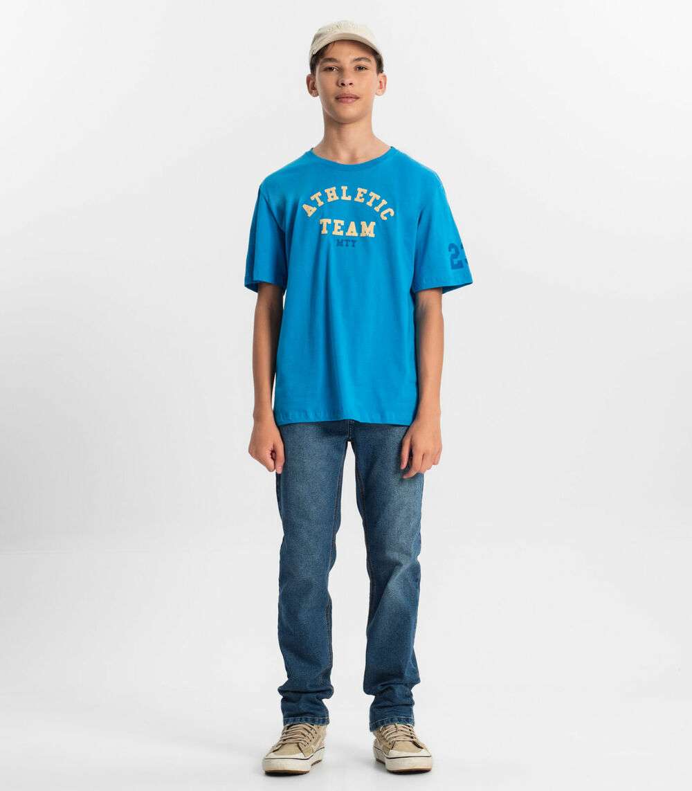 Camiseta Juvenil Masculina Em Meia Malha Minty Azul
