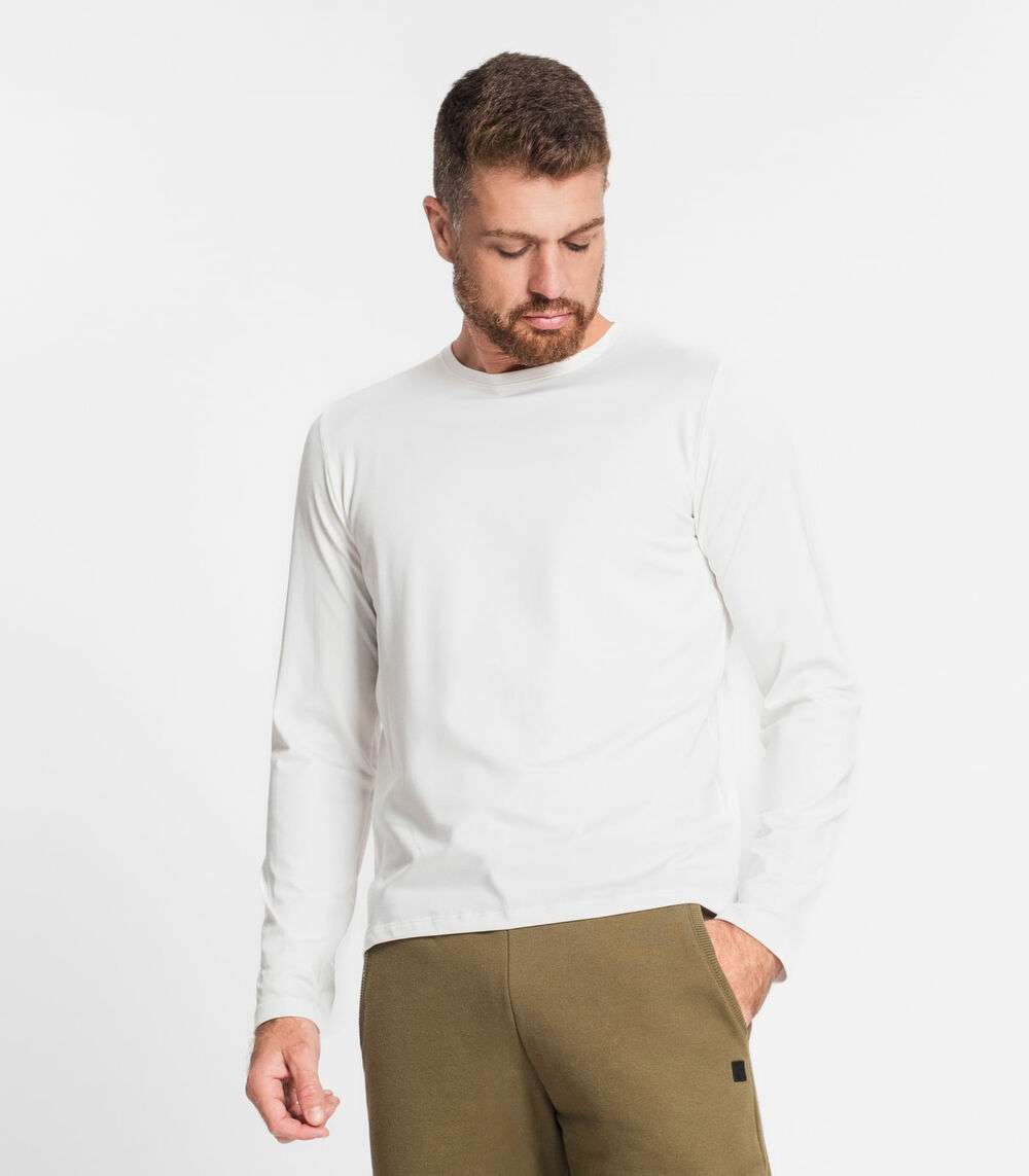 Camiseta Manga Longa Meia Malha Diametro Bege